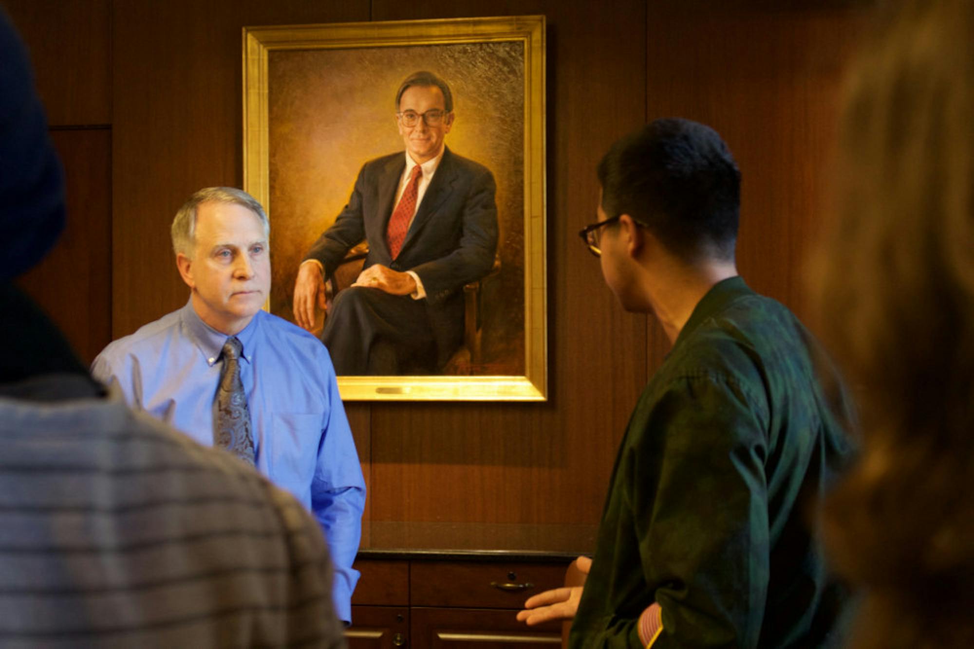 University President James W. Wagner listens to students. / Julia Munslow, Executive Editor