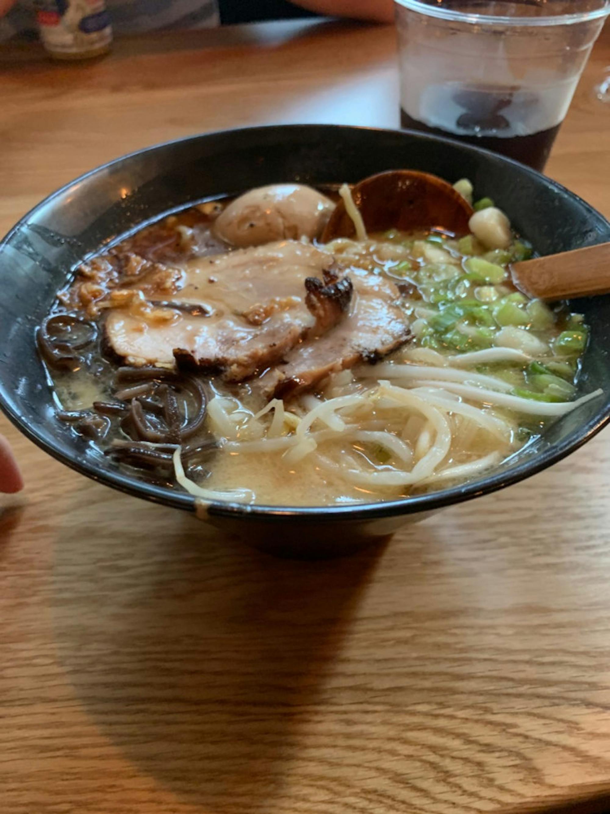 Following the appetizer, I ordered the Tanaka Classic, a tonkotsu ramen dish. Tonkotsu, originating from Japan’s Fukuoka Prefecture, features ramen soaked in a rich pork bone broth featuring kikurage mushrooms and a swirl garlic oil. The steaming bowl was topped with a seasoned, runny boiled egg and sliced chashu, which is pork belly braised in soy sauce, sake and mirin. The broth boasted a zesty flavor and the bean sprouts, green onions and fried onions complemented the dish well. The thick ramen noodles, though inoffensive, were remarkably average and failed to make a lasting impression. The chashu, though delicate and melting in the mouth with a sweet and savory taste, was scant in quantity. Its quality failed to compensate for the two medium-sized pieces that were served.