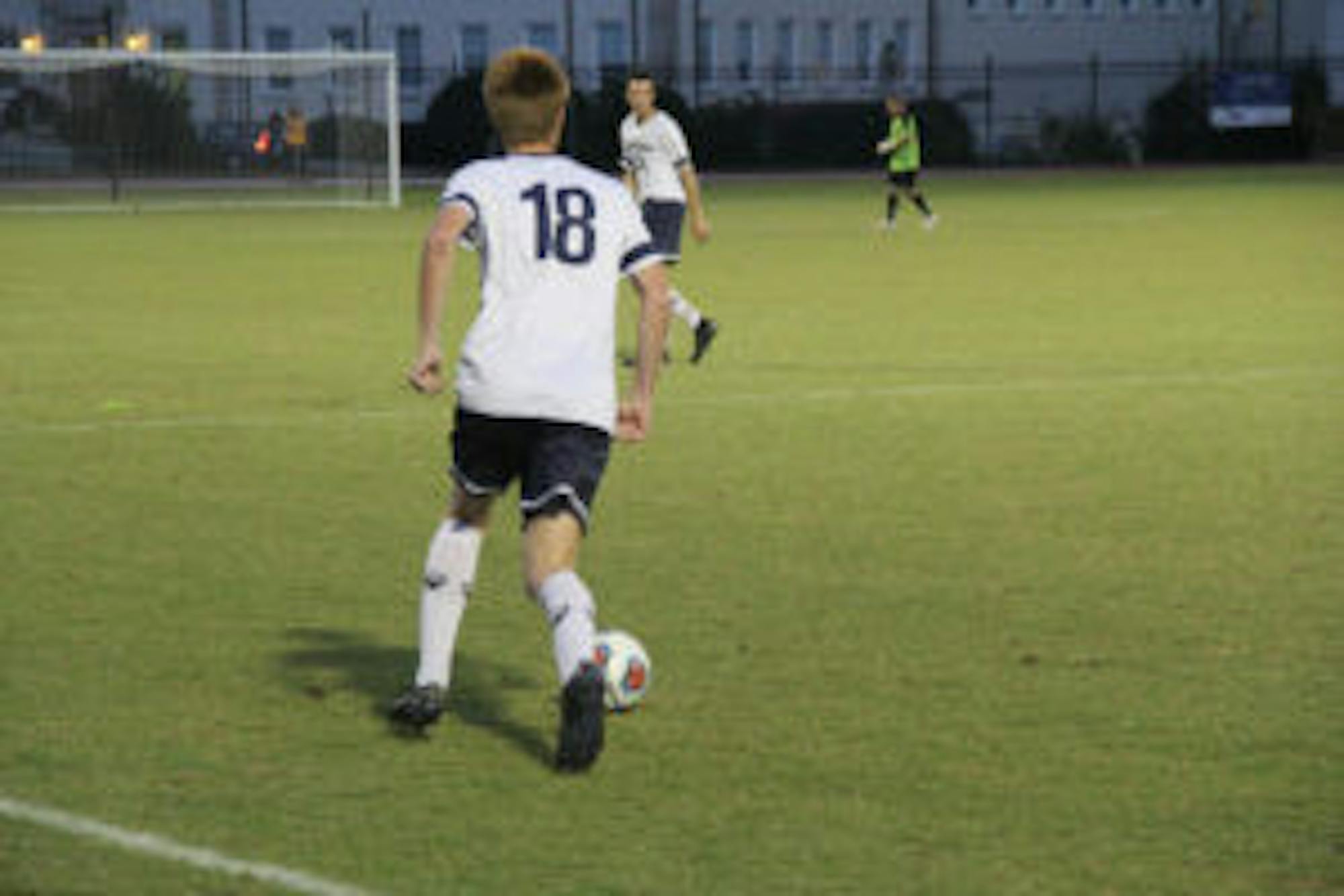 Senior midfielder Aidan Datene reads the field in a match against Sewanee: The University of the South (Tenn.) on Sept. 25. Datene scored the first goal of the game after a corner kick. Keerthana Sivaramakrishnan/Staff